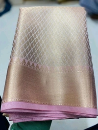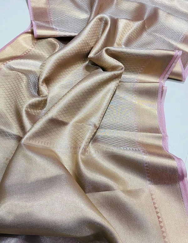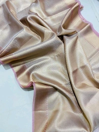 Shine like a star with this luxurious golden zari tissue saree, inspired by celebrity elegance. Crafted from premium tissue fabric, it offers a lightweight, graceful drape with a rich, glossy finish. The intricate golden zari weaving adds a royal glow, making it perfect for weddings, festivals, and special occasions.